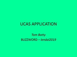 Tom Batty is applying to university to study music production or music journalism. He has studied creative media at York College for two years, achieving a Merit grade. He enjoys music and wants to pursue a career in the music industry. Tom works part-time at a cafe to gain experience dealing with customers. He believes university is the next logical step to further his knowledge of the music industry and achieve his career goals.