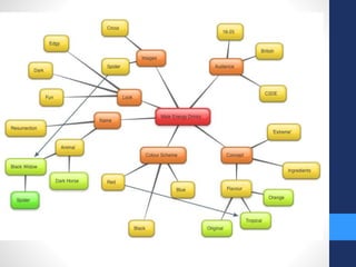 The document outlines the development process for designing an energy drink product and advertising campaign aimed at males aged 18-25 in the UK market. It discusses three potential product name ideas - "Dark Horse", "Resurrection", and "Black Widow" - and explores font, color scheme, and packaging design options. Mockups are created for the potential can designs. It also discusses plans for a storyboard and advert featuring colored smoke emerging from the can and highlighting the product name and slogan ("One Bite is All it Takes"). The goal is to create an eye-catching yet simple design that will stand out to the target audience.