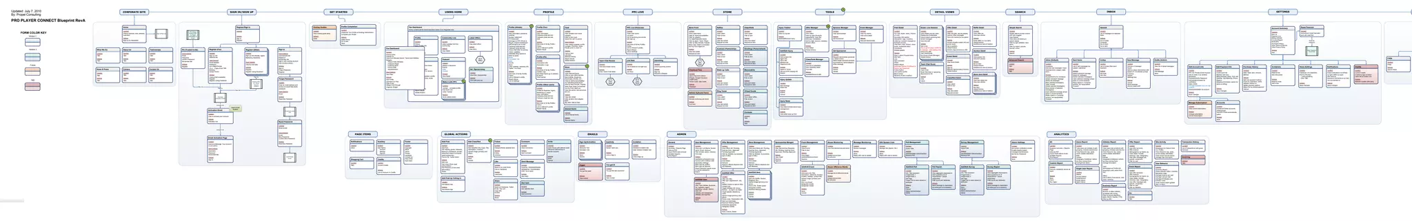 PPC Blueprint RevA outlines the key components of a Pro Player Connect platform, including a profile completion section for athletes and fans, a fan dashboard to view relevant content, a marketplace storefront, and tools to manage offers, sponsors, events, and other platform elements. The platform aims to provide an integrated view of these various sections in one centralized location for users.