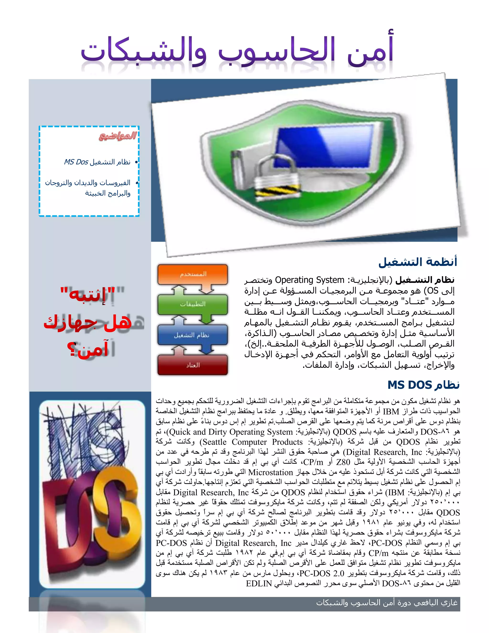 إم إس دوس هو نظام تشغيل متكامل مصمم للحواسيب من طراز IBM وأجهزتها المتوافقة، ويتم تحميله على الأقراص المرنة والصلبة. يتضمن النظام عدة إصدارات كانت تتميز بتحسينات متعلقة بإدارة الأقراص والذاكرة، إضافةً إلى وظائف متعددة منها تشغيل الحاسوب وتنفيذ الأوامر. كما يشمل النظام حماية من الفيروسات التي تضر بملفات الحاسوب وتعتبر شائعة في عالم البرمجيات.