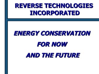 Reverse Technologies is a company based in San Jose, CA that was established to promote energy conservation. One of their energy conservation efforts is a patented Polarized Refrigerant Oil Additive called Compress Shield, which has been found to be highly effective by the U.S. Department of Energy. Compress Shield helps reduce operating costs by an average of 5% guaranteed, reduces maintenance costs, and extends equipment life by improving heat exchange and reducing friction in HVAC systems. Reverse Technologies performs inspections, establishes energy usage baselines, installs Compress Shield, and documents the energy savings achieved. The cost of applying Compress Shield typically pays for itself within 18 to 24 months through reduced energy costs.