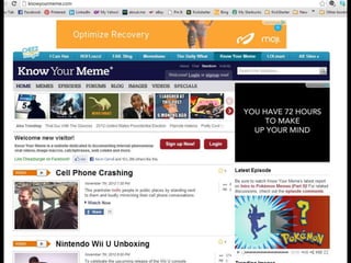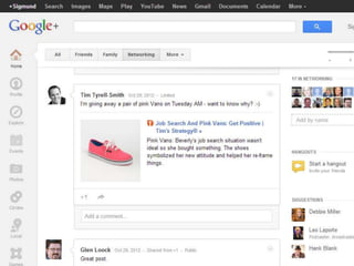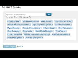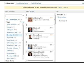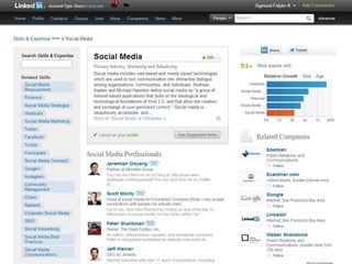 The document provides 6.5 ways to proactively use social media to find a job. It recommends being a CLOSER by changing your online presence often, optimizing your LinkedIn profile, networking online and with target companies, educating others through blogging and videos, building relationships, and keeping up with new content. The key steps are to purposefully use social media as a tool and not expect quick or easy results based on past successes. Social media should be used dynamically to update profiles, resumes, and stay actively engaged.