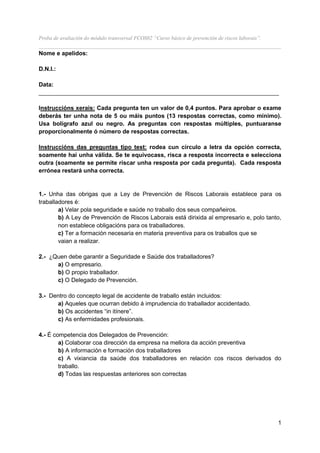 Proba de avaliacióndo módulo transversal FCOS02 “Curso básico de prevención de riscos laborais”.