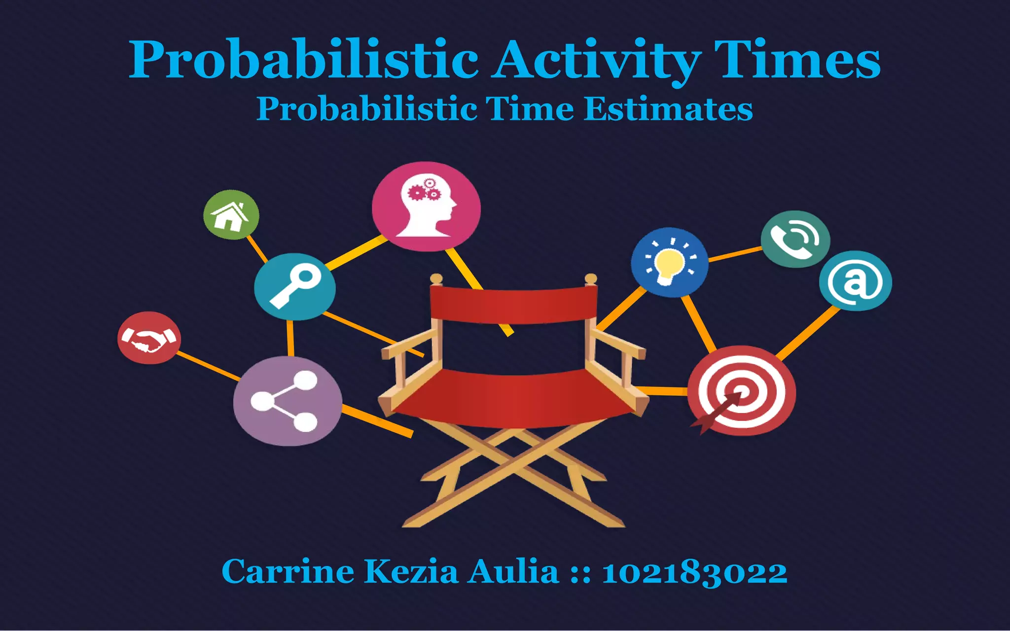 This document discusses probabilistic activity times in project management. It explains that probabilistic estimates allow for variation by using three time estimates - optimistic, most likely, and pessimistic - for each activity. These estimates are used to model the activity times with a beta distribution defined by a mean and variance. An example project network is presented that calculates earliest and latest times, slack, and performs probabilistic analysis to determine the likelihood of completing within a proposed time.