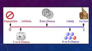 Probability is the chance that something will happen or the likelihood of an event. It is measured by the number of favorable outcomes divided by the total number of possible outcomes. Some key contributors to the development of probability include Buffon, Kerrich, and Pearson who performed coin toss experiments to determine experimental probabilities. Probability is used in various real-life domains like weather forecasting, insurance policies, sports strategies, and medical decisions.