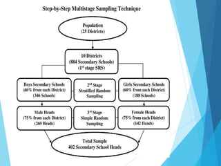 The document provides an overview of probability sampling in agricultural statistics, outlining definitions, objectives, characteristics of good samples, and various methods including simple random sampling, stratified random sampling, systematic sampling, cluster sampling, and multistage sampling. It details the advantages and disadvantages of each sampling method as well as sampling errors and non-sampling errors. The document concludes with the principle steps involved in conducting a sample survey.