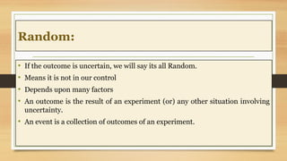• If theoutcome is uncertain, we will say its all Random.