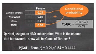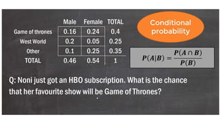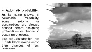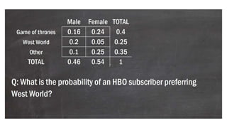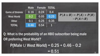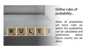 This document covers concepts of probability including basic definitions, types, and rules such as joint, marginal, and conditional probabilities. It provides examples related to customer complaints, gender distributions in a business school, and defective items produced by machines, demonstrating how to calculate various probabilities. Additionally, it discusses binomial distributions and lists criteria and business examples associated with it.
