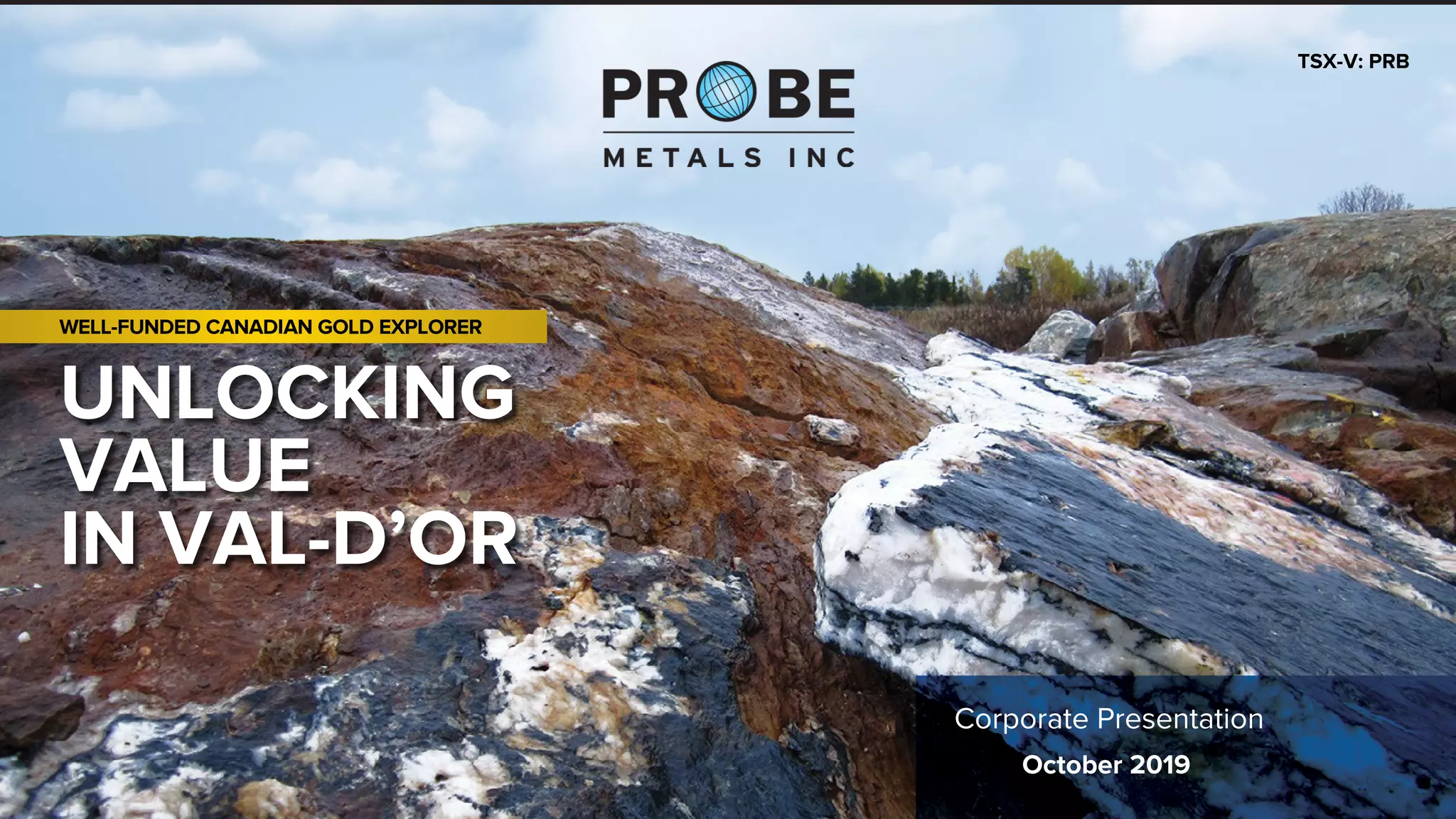 Probe Metals is a well-funded Canadian gold explorer focused on its 334 km2 Val-d'Or East project in Quebec's Abitibi gold belt. The project hosts over 3.2 million ounces of gold in resources and has potential for resource expansion and new discoveries. Probe has a strong balance sheet with over $25 million and is conducting regional exploration to unlock additional value in the underexplored district.