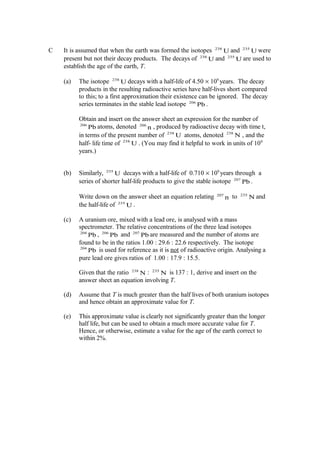 Problem C uses radioactive decay of uranium isotopes to date the age of the Earth, deriving equations relating isotope ratios to time and obtaining an approximate age of 5.38 billion years.