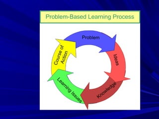 This document discusses how problem-based learning (PBL) connects to the Common Core standards. PBL engages students by designing real-world problems that stimulate meaningful experiences through problem-solving, collaboration, and resource sharing. An effective problem for PBL is student-centered, well-prepared, cognizant, and meaningful. PBL supports Common Core by using problems to drive skills acquisition and encourage exploration, with the process building real-world connections and content synthesis demonstrated through products. Collaboration and technology integration are key aspects of how PBL facilitates deeper learning aligned with Common Core.