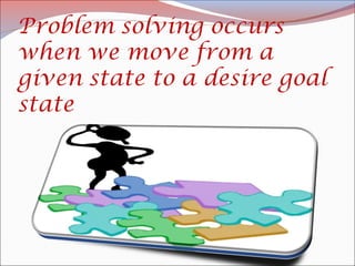 The document discusses problem solving by outlining the steps which include identifying the problem, exploring solutions, selecting a solution, testing it, and evaluating the results. It notes tools that can be used like brainstorming, root cause analysis, and trial and error. Advantages of problem solving are greater output, new perspectives, better solutions, and personal growth, while disadvantages include increased risk, time pressures, and potential demotivation. The document stresses the importance of addressing problems rather than ignoring them.