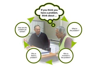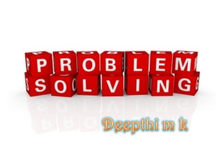 Problem solving is a mental process of discovering, analyzing, and solving problems to overcome obstacles and find the best solution. A problem exists when a problem solver has a goal but does not know how to reach it. Problem solving involves making adjustments despite interference to attain a goal, according to Skinner's definition. Common problem solving methods include algorithms, heuristics, trial-and-error, insight, and brainstorming. Factors like the nature of the problem, prior experience, and mental state can impact the problem solving process. Teachers can help by selecting problems, motivating students, encouraging divergent thinking, and providing guidance and practice.