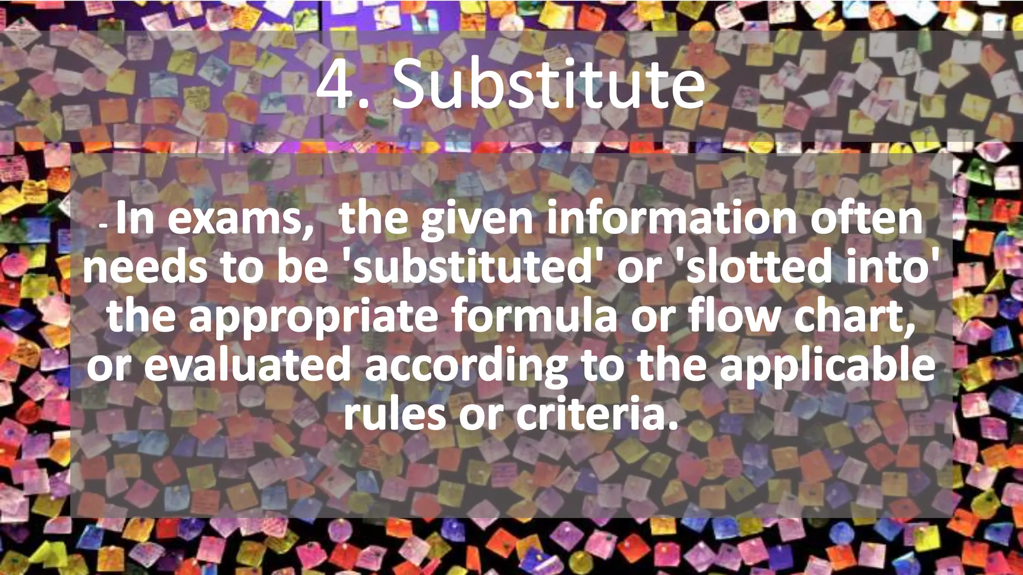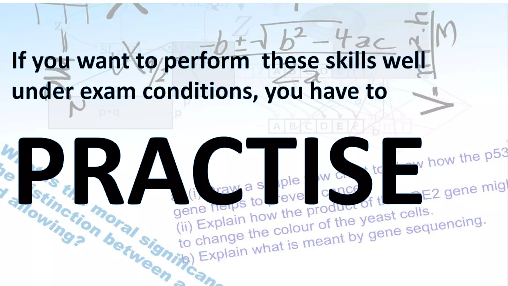 This document provides tips for practicing exam technique by applying the facts learned rather than just regurgitating them. It recommends gathering old exam questions, sample questions, and problem sheets to practice identifying, classifying, transforming, and substituting. The final step is to compare your results to solutions to check if they are reasonable or in the right range. Additional tips include classifying problems to demonstrate understanding, revising out of sequence to access knowledge without context clues, and working problems without notes to identify areas needing more study.