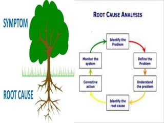 - Describing techniques for analyzing problems like root cause analysis, fishbone diagrams, 5 whys
