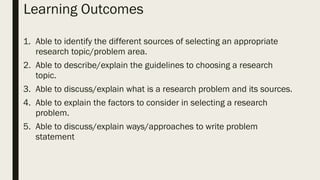 6. Issues or problems in an organization or in our environment can be subject for research.