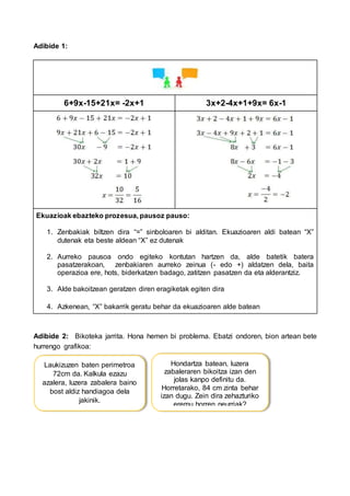 Ekuazioak ebazteko prozesua, pausoz pauso: