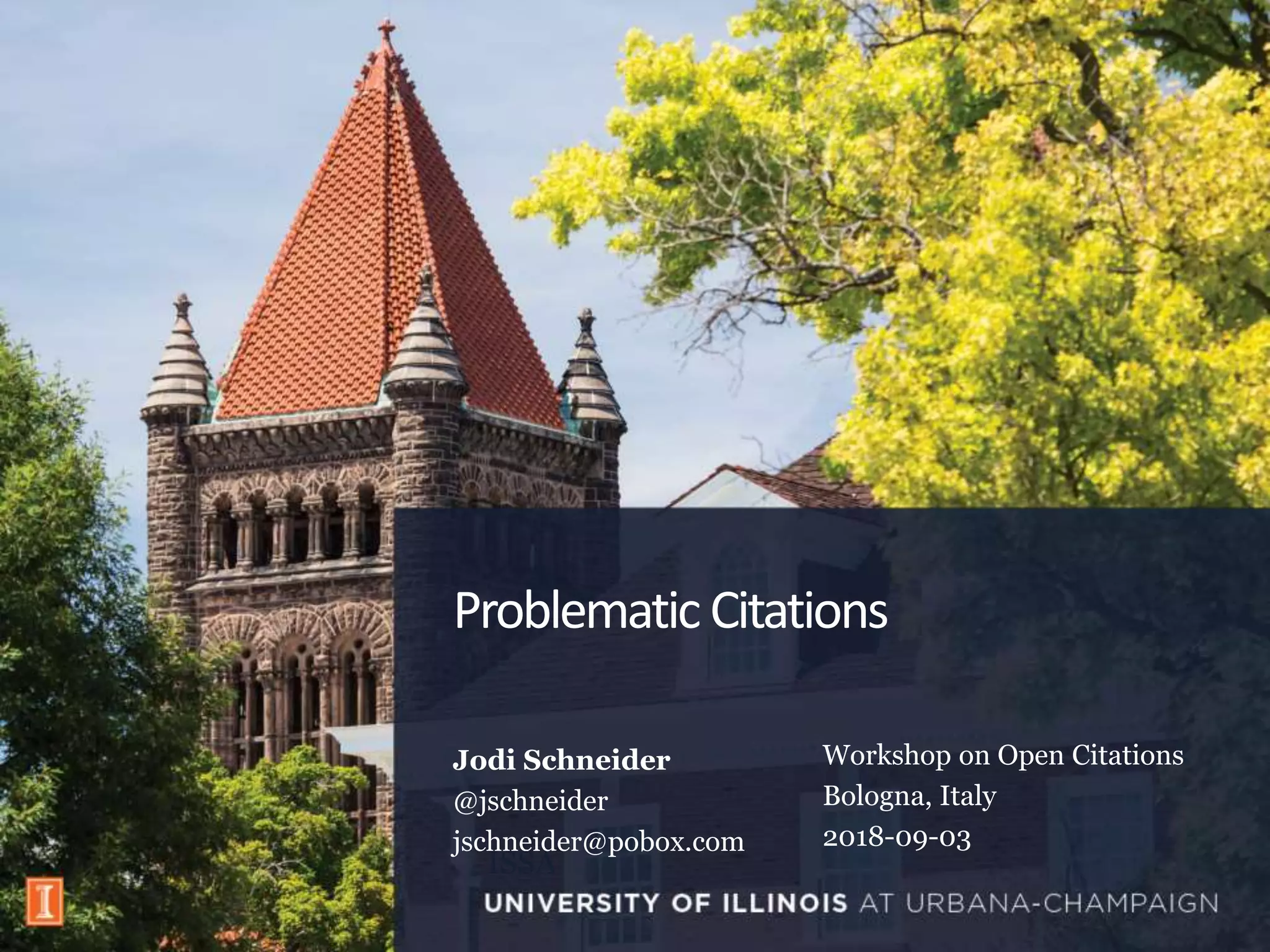 The document discusses problematic citations in scientific literature, highlighting issues such as citation of retracted literature, bibliographic ghosts, misrepresenting cited work, and selective citation. It presents a visual analytic study of retracted articles and emphasizes the importance of understanding citation relationships and author networks to address these citation problems. The text also references multiple studies that illustrate these issues and their impact on research integrity.