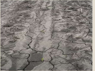 This document summarizes different types of problematic soils, including their causes and solutions. There are two main types - chemical soils like acidic, saline, sodic, and alkaline soils which form due to chemical imbalances, and physical soils with issues like hard pans, waterlogging, and dispersion. Solutions include adding lime to acidic soil, leaching salts from saline soil, changing plant varieties for sodic soil, and installing drainage for waterlogged soils. The document provides details on the characteristics and remediation approaches for each problematic soil type.