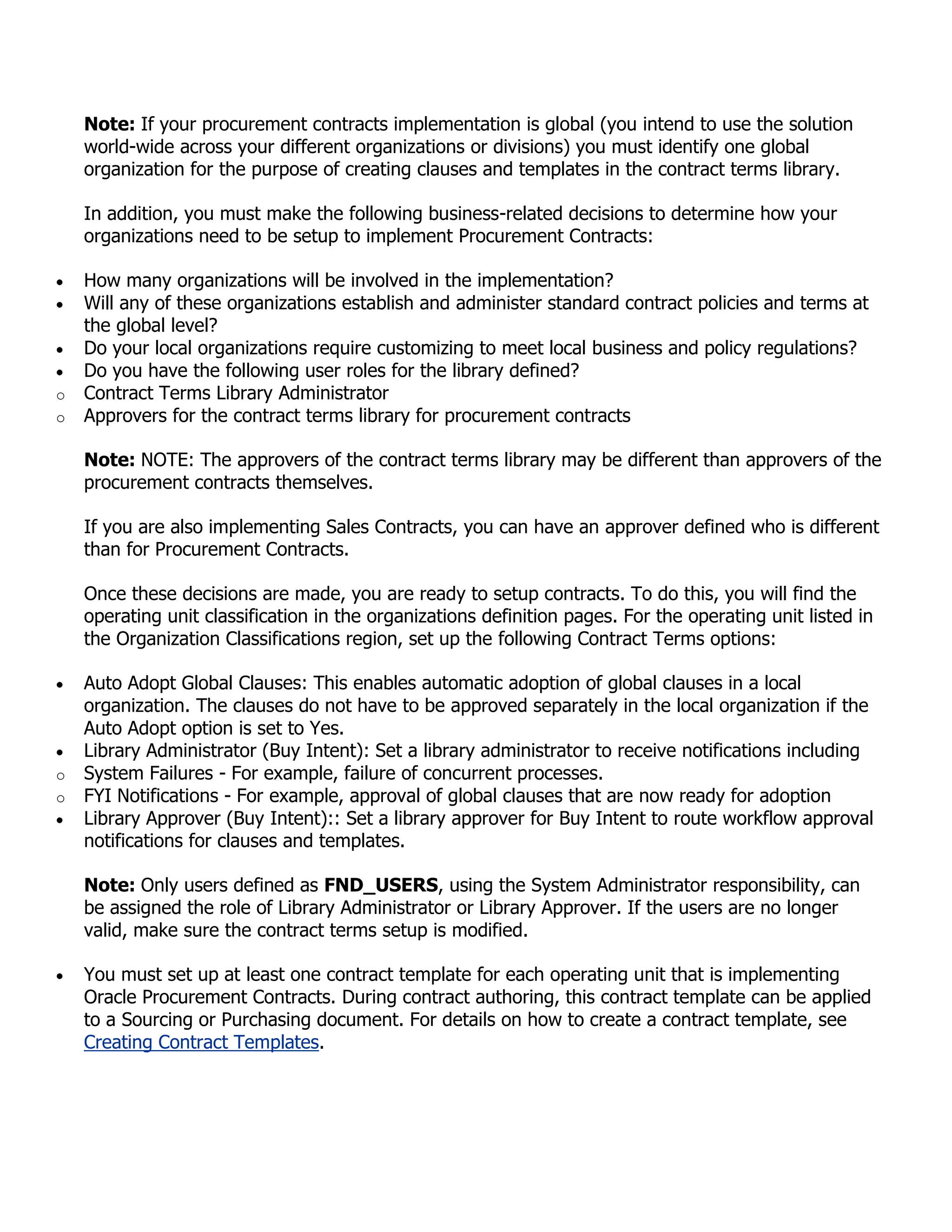 1. The document discusses setting up Oracle Procurement Contracts, including setting up organizations, profile options, approvers, lookup codes, and enabling keyword search.
