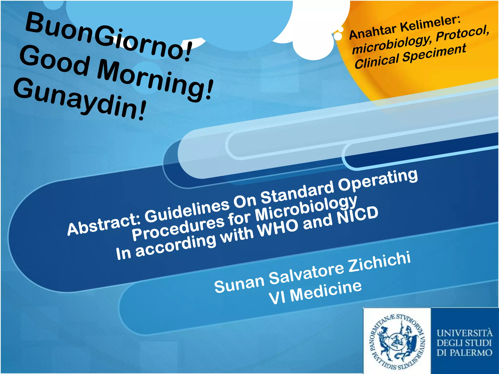 This document provides guidelines on standard operating procedures for microbiology laboratory diagnosis. It discusses the proper collection, transport, and processing of various clinical specimens like blood, cerebrospinal fluid, sputum, urine, stool, and others. Key points emphasized include collecting specimens before antimicrobial administration, using appropriate containers, minimizing delays in transport and storage, and preventing contamination. The document also outlines procedures for staining techniques, sterilization, waste disposal, and quality control. Following standardized protocols helps ensure accurate laboratory diagnosis of infectious diseases.