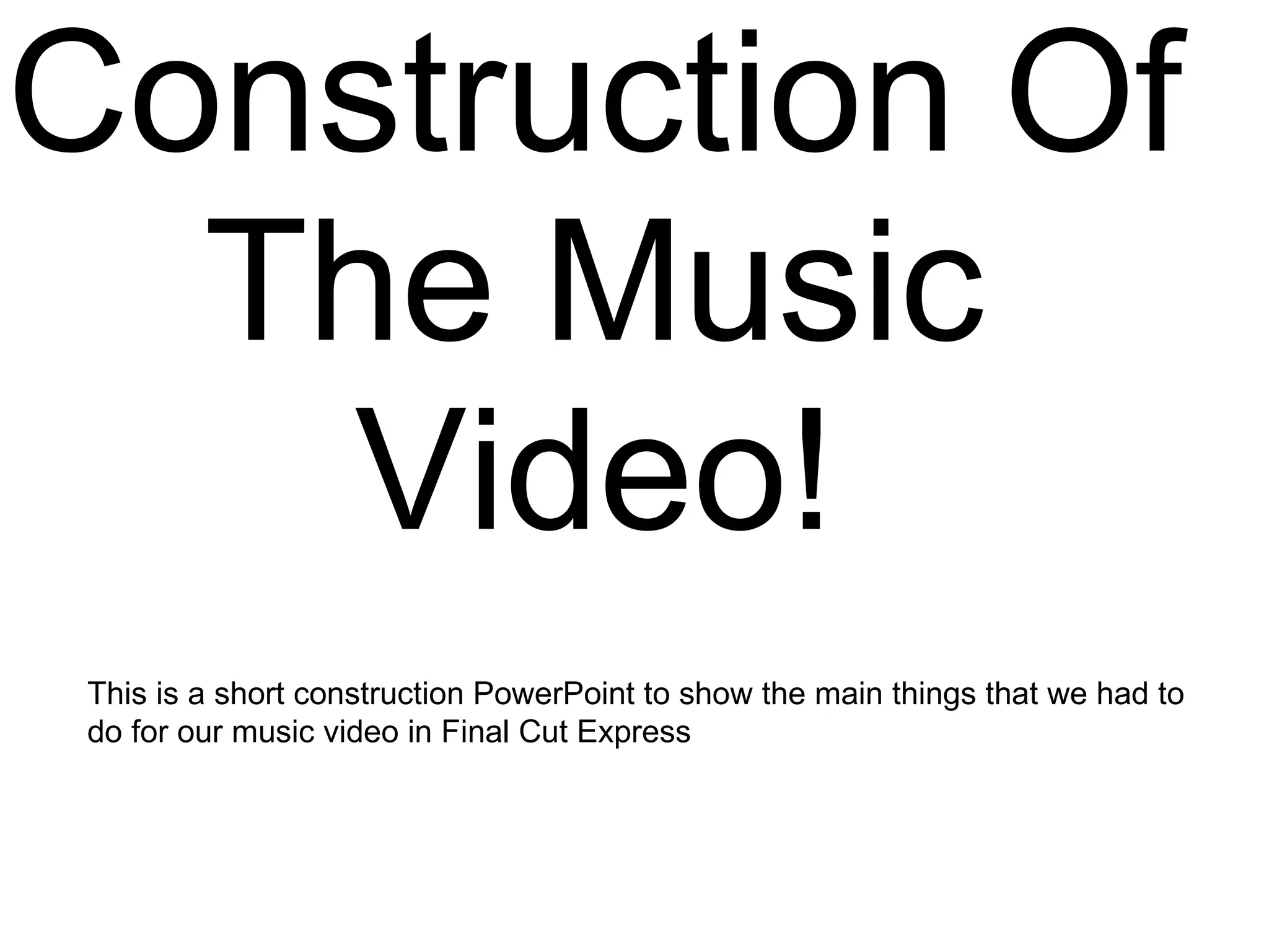 The document summarizes the process of creating a music video using Final Cut Express software. The first step was selecting clips from recorded footage which took several hours. The selected clips and their details were written down before being imported into Final Cut Express. Importing and cutting the clips to the noted times was a long process. Rendering was also very time consuming, taking up to 3 hours initially. Various editing techniques were used like zooming in on clips, adding dissolves, and modifying clip speeds and durations. Once completed, beginning and end credits were added to polish the final music video.