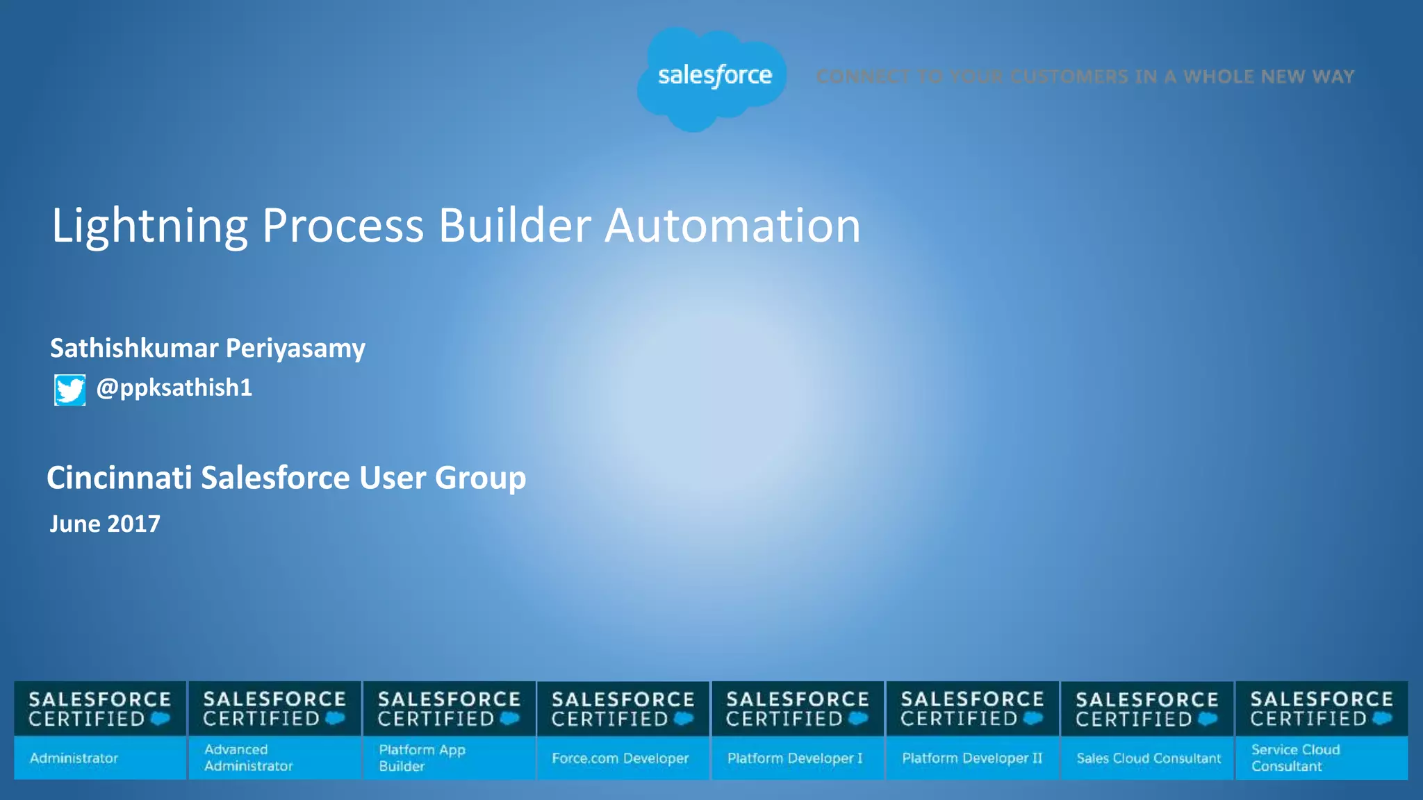 The document presents an overview of Salesforce's Process Builder, detailing its capabilities for automating workflows without code through a visual interface. Key topics include types of Process Builder actions, considerations for usage, limitations, and specific use cases demonstrating its application in various business scenarios. A Q&A session concludes the presentation, offering further clarity on the discussed topics.