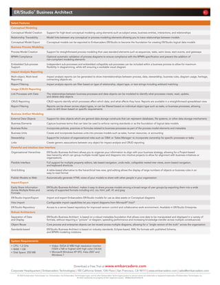 ER/Studio Business Architect is a powerful tool for modeling business processes and data architecture, allowing companies to visualize and manage their operations effectively. It facilitates compliance with government regulations by mapping business processes to data relationships and offers features for collaborative modeling, version management, and impact analysis. The software supports standard formats like BPMN and integrates with various data modeling tools for improved efficiency and data quality.