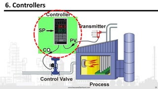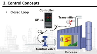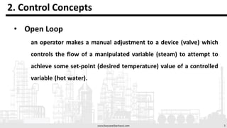 The document is an introductory guide to control concepts for chemical engineers, authored by Hassan Elbanhawi, a process engineer with significant experience in various chemical processing industries. It includes an overview of his professional and academic background, as well as a list of topics related to process control, such as compressors, turbines, and heat exchangers. The guide aims to provide foundational knowledge necessary for understanding process control in the chemical engineering field.