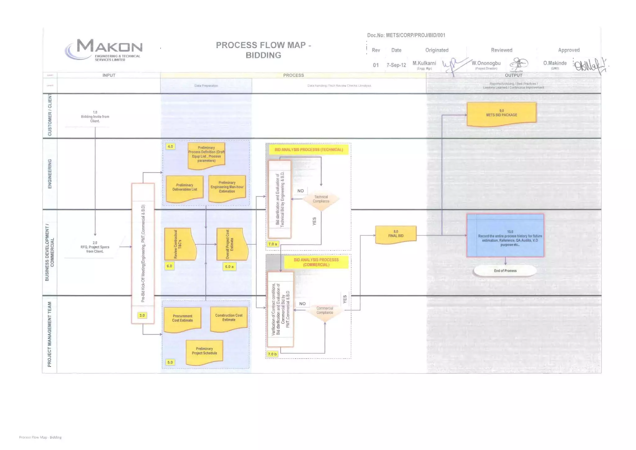 3. The flow map shows the inputs, processes, and outputs involved at each stage to develop and submit a bid in response to a request for quotation from a client.