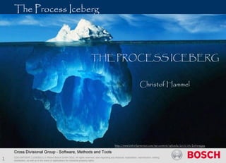 The document discusses the "process iceberg" concept which views processes as having visible and invisible elements. It argues that while processes are defined to achieve organizational and economic goals, they are primarily influenced by psychological and sociological factors. It advocates for Agile principles which better reflect human nature through iteration, collaboration and responding to change. If processes adopt Agile paradigms focusing on these human aspects, it could contribute significantly to productivity and economic growth.