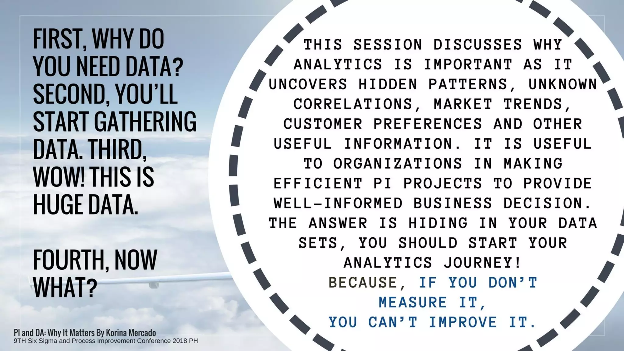 The document presents survey results from the IIA Milwaukee Chapter regarding data analytics, showing a diversity in analytical maturity levels among respondents. It emphasizes the importance of practical steps in building analytical maturity, such as Lean and Six Sigma methodologies, to enhance processes by reducing waste and defects. Additionally, it includes analysis of passenger boarding times, indicating inconsistencies and variability in the boarding process, with the fastest and slowest times documented.
