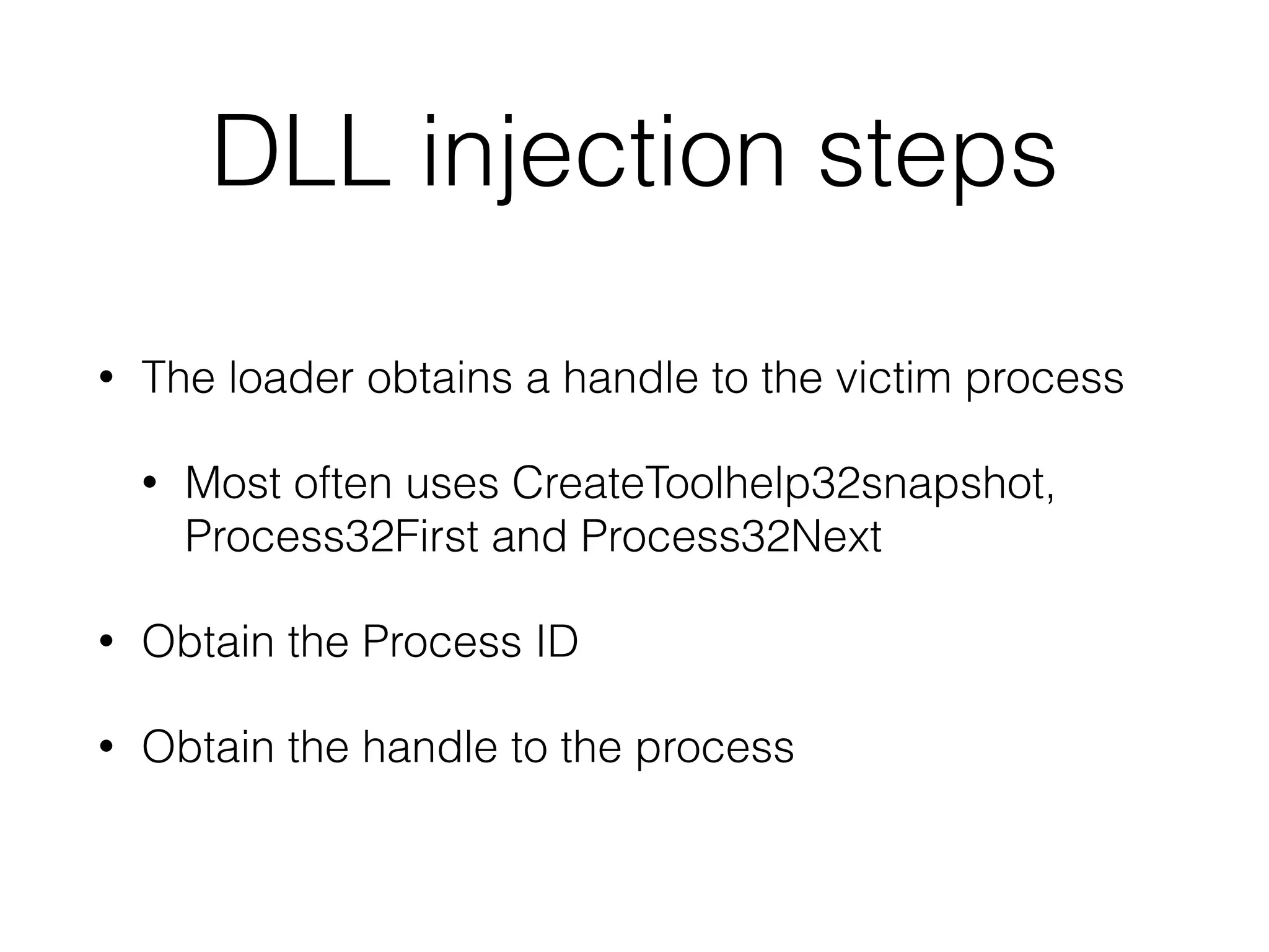 The document provides an overview of process injection techniques, specifically focusing on DLL injection and process replacement within the Windows operating system. It explains how these methods enable malware to execute code invisibly by manipulating the memory and behavior of legitimate processes. Key concepts covered include the structure of Windows processes, the mechanics of DLL injection, and the steps involved in process replacement, highlighting the potential risks and detection methods associated with these techniques.