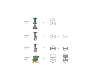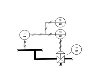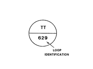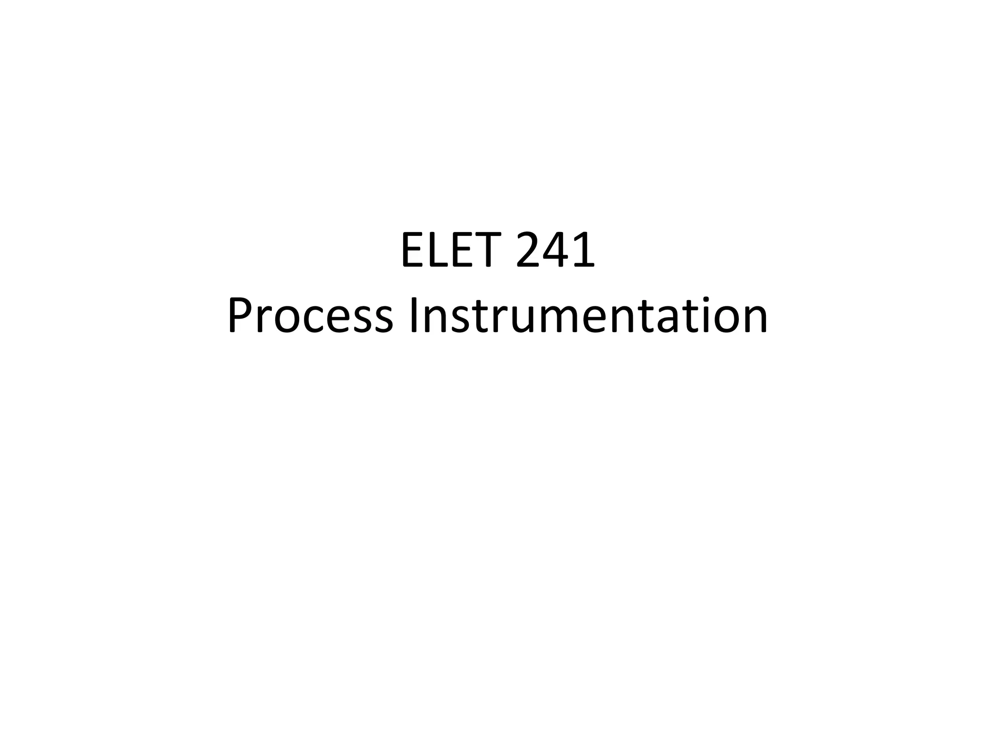 This document provides an overview of the ELET 241 Process Instrumentation course. It outlines the main and additional references used in the course, the various assessments including quizzes, exams, and lab performance. It lists the course rules regarding attendance, checking Blackboard daily, and homework submission deadlines. The document then provides definitions and descriptions of key process instrumentation terms and components, including process variables, sensors, transmitters, controllers, control elements, and indicators. It also describes process and instrumentation diagrams and the symbols and information conveyed.