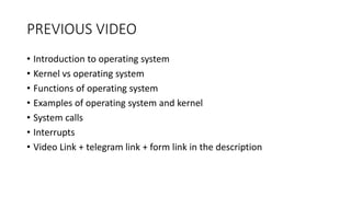 The document covers key concepts of process management in operating systems, explaining the differences between programs and processes, process control blocks, and various system calls such as fork(), exec(), wait(), and exit(). It also discusses process states, and the phenomena of zombie and orphan processes, providing formal definitions along with notable interview questions related to these topics. Additionally, it includes links to educational videos and examples to enhance understanding of process creation and management in Linux systems.