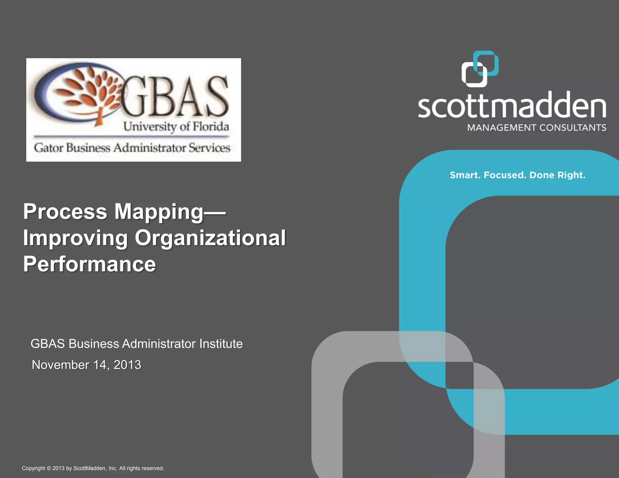 The document provides an overview of process mapping and process improvement. It outlines a three-step framework - Analyze, Design, Implement. The Analyze step is described in detail and includes defining the problem, determining scope, collecting information through interviews and workshops, and documenting findings. Key aspects of process mapping like roles/responsibilities and flow are also outlined. The overall goal is to establish a clear understanding of the current process as a foundation for future improvements.