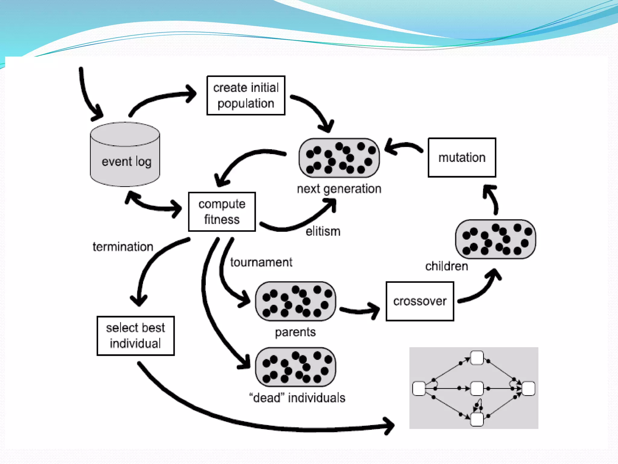 Process mining is a technique that analyzes event logs from information systems to discover business process models. There are four main approaches to process mining: discovery, conformance checking, enhancement, and online control. Discovery techniques take an event log and produce a process model without using any prior information. Conformance checking compares an existing process model to an event log of the same process. Enhancement extends or improves an existing process model using information from an event log. Direct algorithmic approaches, two-phase approaches, computational intelligence approaches, and partial approaches are the main techniques used in process mining.