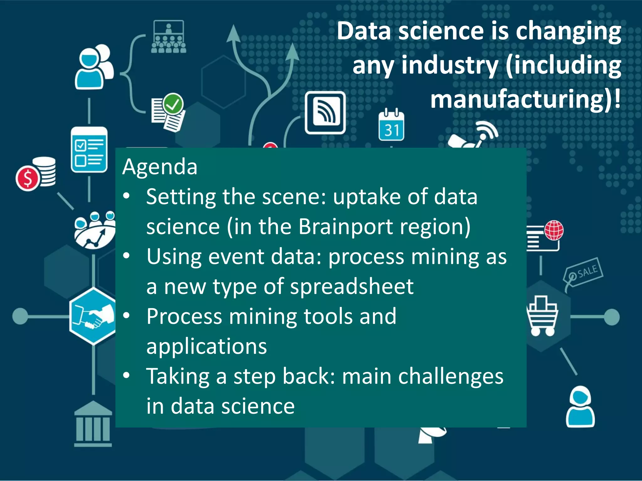 3) The main challenges in data science and process mining include dealing with high volume and velocity data, extracting useful knowledge from data to answer known and unknown questions, and ensuring responsible use of data and algorithms that considers fairness, accuracy, transparency and other factors.