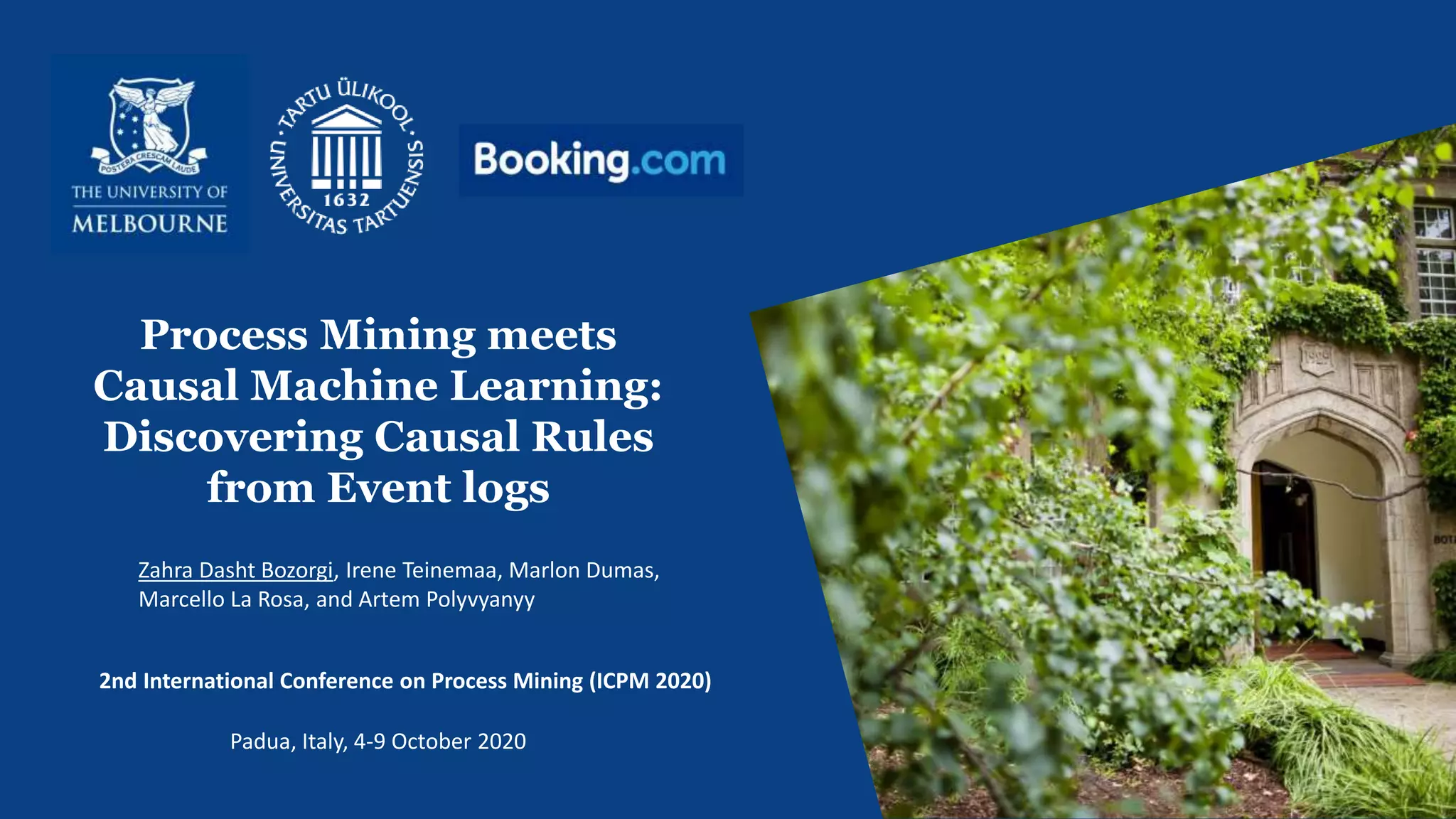 The document proposes a framework that combines process mining and causal machine learning to discover causal rules from event logs. It identifies candidate treatments using action rule mining on event log data. It then uses uplift trees to discover subgroups where a treatment has a high causal effect on outcomes, addressing confounding. The approach was tested on a loan application dataset, discovering 8 causal rules that recommend process changes to increase loan selections. Future work includes incorporating other recommendation types and addressing unobserved confounding.