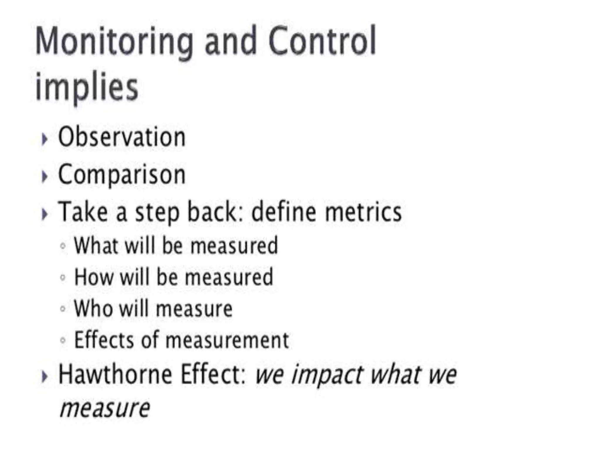 This presentation discusses software metrics for monitoring and control. It covers why metrics are measured, different types of metrics including process, project and product, types of software measurements, normalization of metrics, and size-oriented metrics. The presentation concludes with a thank you and invitation for any questions.