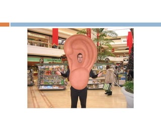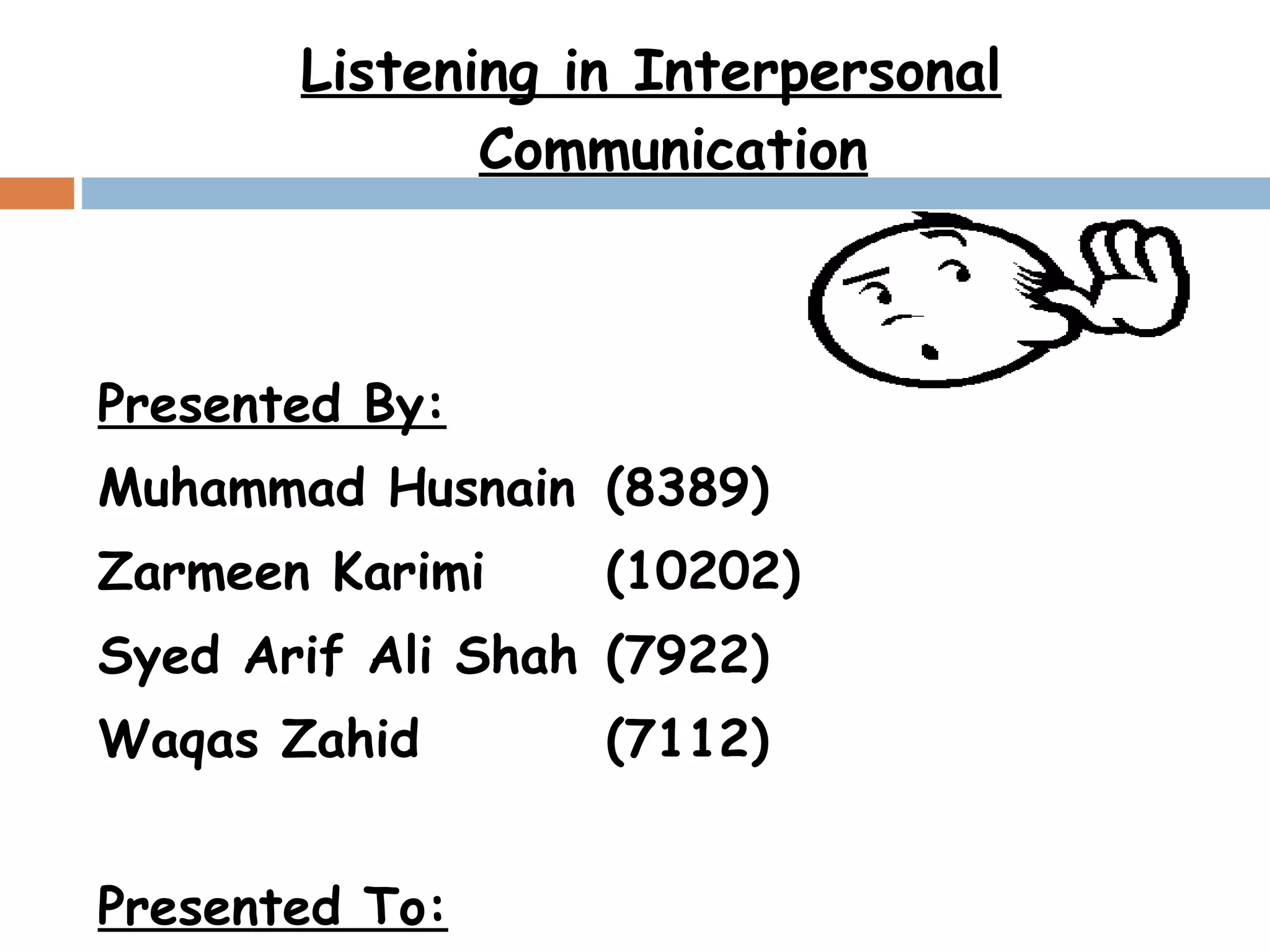 The document discusses various aspects of listening in interpersonal communication. It defines listening as a psychological process that involves receiving, attending to, constructing meaning from, and responding to spoken messages. In contrast, hearing is defined as the physiological process of sound waves stimulating the ear. The document also highlights the importance of listening, noting that people recall only 20% of what they hear long-term. Additionally, it describes different styles of listening like participatory, empathic, non-judgmental, and active listening and provides techniques for effective listening such as paraphrasing, expressing understanding, asking questions, and maintaining eye contact.