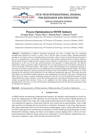 Establishment of efficient machining parameters has been a problem that has confronted manufacturing industries for nearly a century, and is still the subject of many studies. Optimum machining parameters are of great concern in manufacturing environments, where economy of machining operation plays a key role in competitiveness in the market. Determination of the optimal cutting parameters (cutting conditions) like the number of passes, depth of cut for each pass, speed, and feed is considered as a crucial stage of multi-pass machining as in the case of all chip removal processes and especially in milling operation. The effective optimization of these parameters affects dramatically the cost and production time of machined components as well as the quality of the final products. This project outlines the development of an optimization strategy to determine the optimum cutting parameters for milling operations like plain milling and face milling. This project also underlies the importance of using optimization strategies rather than handbook recommendations as well as pointing out the superiority of the multi-pass over the single-pass optimization approach. The project discusses both single-tool and multitool milling operations where emphasis has been placed on the latter. Although many efforts have been made to optimize machining parameters, from the review of the published literature it can be concluded that most of the work done is restricted to turning operations, and other machining operations, including milling, have gained little attention. Owing to the significant role that milling operations play in today's manufacturing world, there is a vital need to optimize machining parameters for this operation, particularly when NC machines are employed.