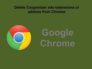 The document provides a step-by-step guide for removing Couponizer ads from various web browsers, including Google Chrome, Mozilla Firefox, and Internet Explorer. It outlines how to delete related extensions and reset browsers to their default settings. Additionally, it suggests seeking expert help if problems persist after manual removal attempts.