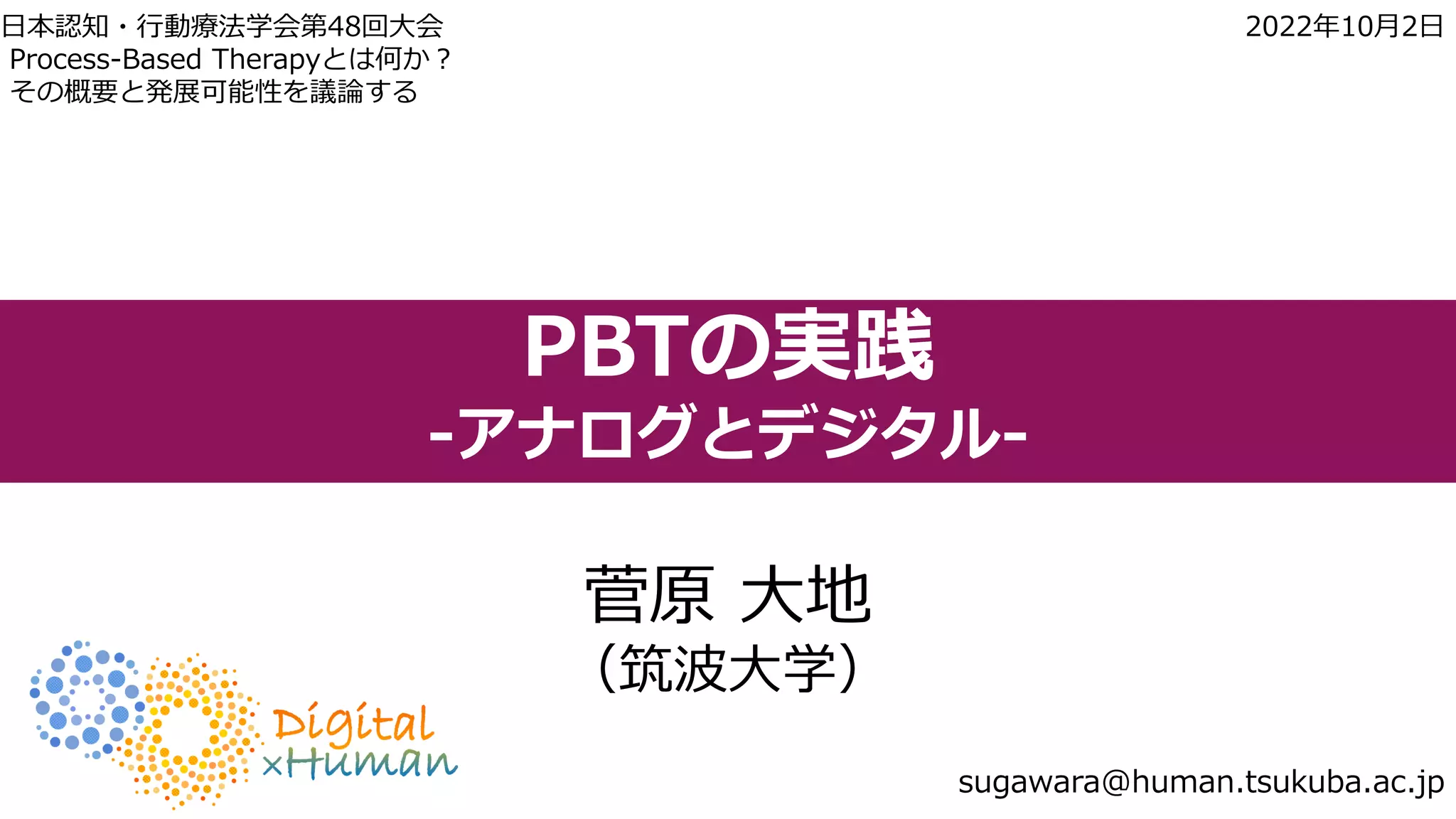 日本認知・行動療法学会第48回大会の自主企画シンポジウム「Process-Based Therapyとは何か? その概要と発展可能性を議論する」用に作成したスライド資料です (話題提供の2件目)。