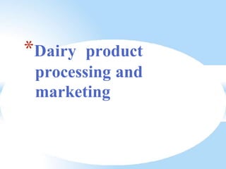 This document summarizes the principles of dairy production, processing, and marketing. It discusses the composition of milk, including proteins, lactose, lipids, minerals, vitamins, and enzymes. The biosynthesis of milk constituents from the mammary gland is described. Finally, it discusses the structural and physical properties of milk as an emulsion, colloid, and solution, and how processing can impact these properties. Factors that influence milk quality like milking interval and lactation stage are also summarized.