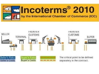 The document discusses the process of an export order from beginning to end. It explains that an export order communicates the importer's decision to purchase items from the exporter, and represents an offer and acceptance between the two parties. The document then outlines each step of securing and processing an export order, including developing logistics, arranging for materials, production, shipment, and negotiating shipping documents.