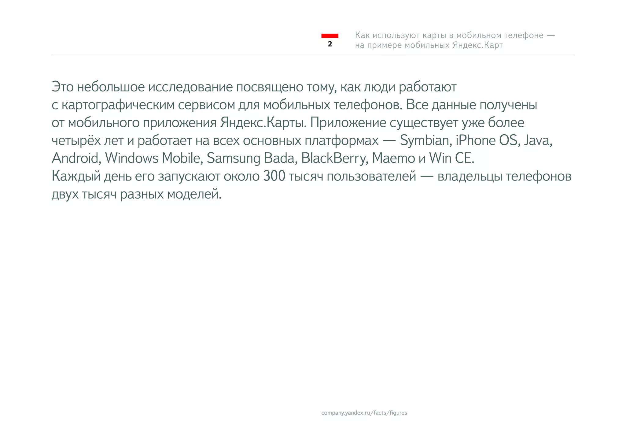 Документ анализирует использование мобильных Яндекс.Карт, основанное на данных пользователей с различных платформ в 2011 году. Основное внимание уделяется популярности мобильных устройств, с уменьшением доли пользователя Symbian и ростом iPhone и Android. Также рассматриваются предпочтения пользователей в операторах связи и активности при использовании приложения, особенно в часы пик.