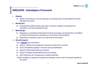 innovació) un conjunt de projectes vinculats a línies d’investigació que l’empresa pot