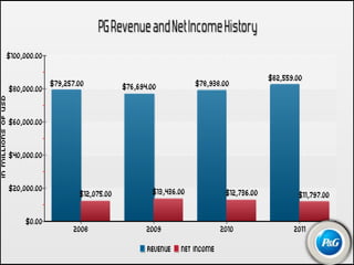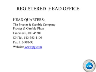 Procter & Gamble, founded in 1837, is a leading consumer goods company with headquarters in Cincinnati, Ohio, operating in 80 countries and serving 4.8 billion consumers through a portfolio of over 300 brands. The company's business is divided into beauty and grooming and household care, generating significant advertising investments and a strong global presence. P&G's vision is to be the best consumer products company, focusing on innovations and maintaining competitive advantages, while facing challenges in emerging markets and sustainability issues.