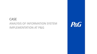 Procter & Gamble is a top consumer products company that relies on collaboration and innovation. They implemented several information systems to improve productivity, including Web 2.0, blogs, a custom search engine, and a Microsoft collaboration suite. Telepresence technology allows high-definition meetings over long distances, saving travel costs. While some tools faced inertia, overall the systems fostered collaboration, reduced costs, and helped execute P&G's business strategy of maintaining popular products and developing new ones through innovation.